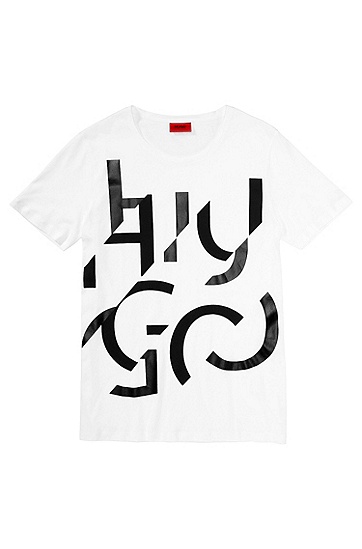 DIESES T-SHIRT VON HUGO MIT DEM NAMEN DUT AUS BAUMWOLLE IN JERSEY-QUALITÄT. DER SHIRT MIT RUNDHALS-AUSSCHNITT UND ABGESTEPPTEN ÄRMELBÜNDCHEN BESTICHT DURCH EINEN MODERN INSZENTIERTEN LOGO-PRINT AN DER FRONT, UND SEHR WEICHE MATERIAL.