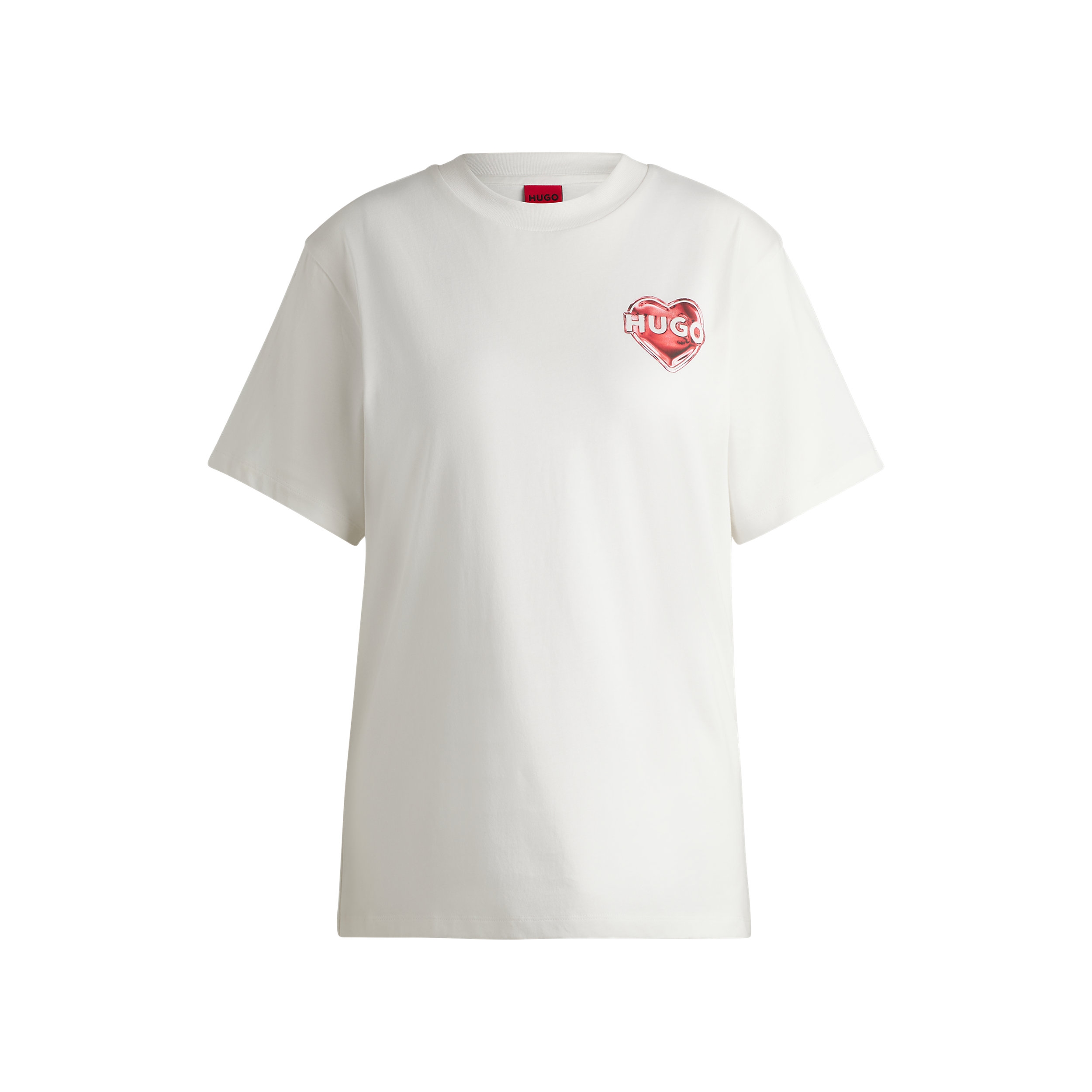 Kastenförmig geschnittenes HUGO T-Shirt. Das locker geschnittene, bequeme Top aus atmungsaktiver Baumwolle ist mit einem markanten Grafik-Artwork bedruckt.