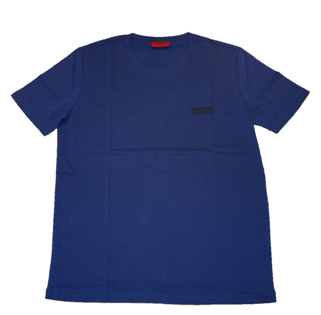DETAILS: MODISCHICHER RUNDHALS AUSSCHNITT- HUGO PRINT AUF DER FRONT SPIEGELVERKEHRT