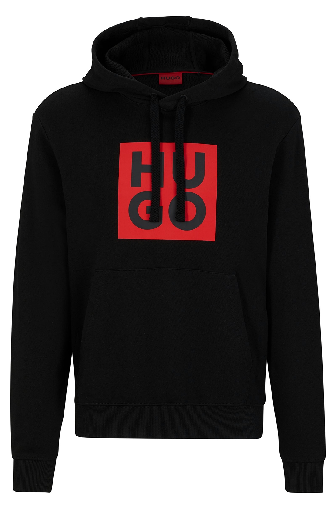Gerade geschnittenes HUGO Kapuzen-Sweatshirt aus French Terry mit besonders großem Stack-Logo-Print in Kontrastfarbe. Mit dem Kauf dieses Produkts leistest du einen wichtigen Beitrag für die Zukunft Afrikas sowie den Schutz unserer Natur. Produkte mit "Cotton-made-in-Africa"-Label helfen dabei, die Umwelt zu schonen und die Lebensbedingungen afrikanischer Baumwollbauern zu verbessern.