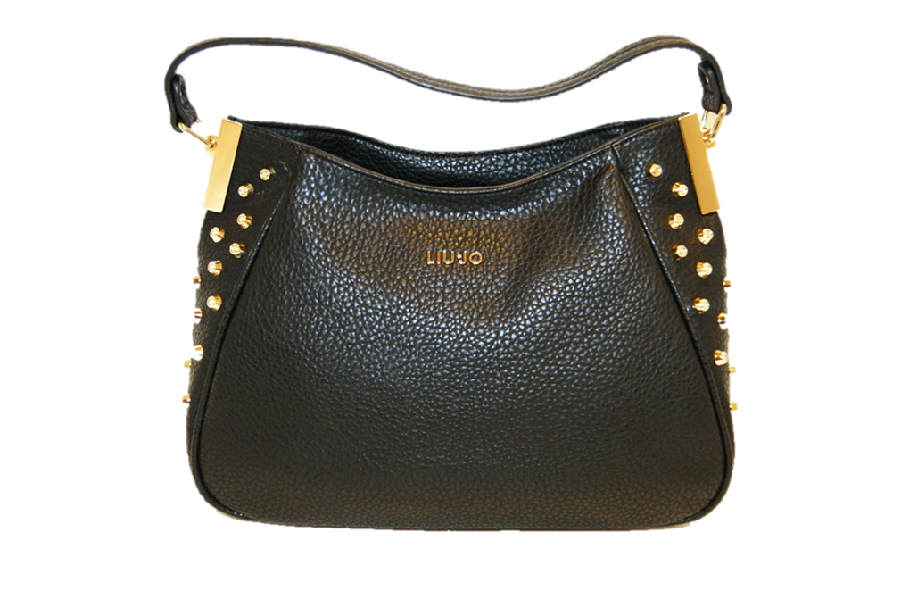 DIESE TASCHE VON LIU JO MIT DEM NAMEN HOBO BAG L CAPRICORNO .UNIFARBENE TASCHE MIT RAFFINIERTEN GOLDNIETEN AN DEN BEIDEN TASCHEN SEITEN . DIE NIETEN UND DIE BESCHLÄGE SOWIE DER REISSVERSCHLUSS SIND AUS GALVANISIERTEN METALL IN HELLGOLD .