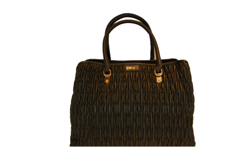 DIESE TASCHE VON LIU JO MIT DEM NAMEN SHOPPING 3 SCOMPARTI IN DER WUNDERBAREN FARBE SCHWARZ . LOCHWELLEN OPTIK