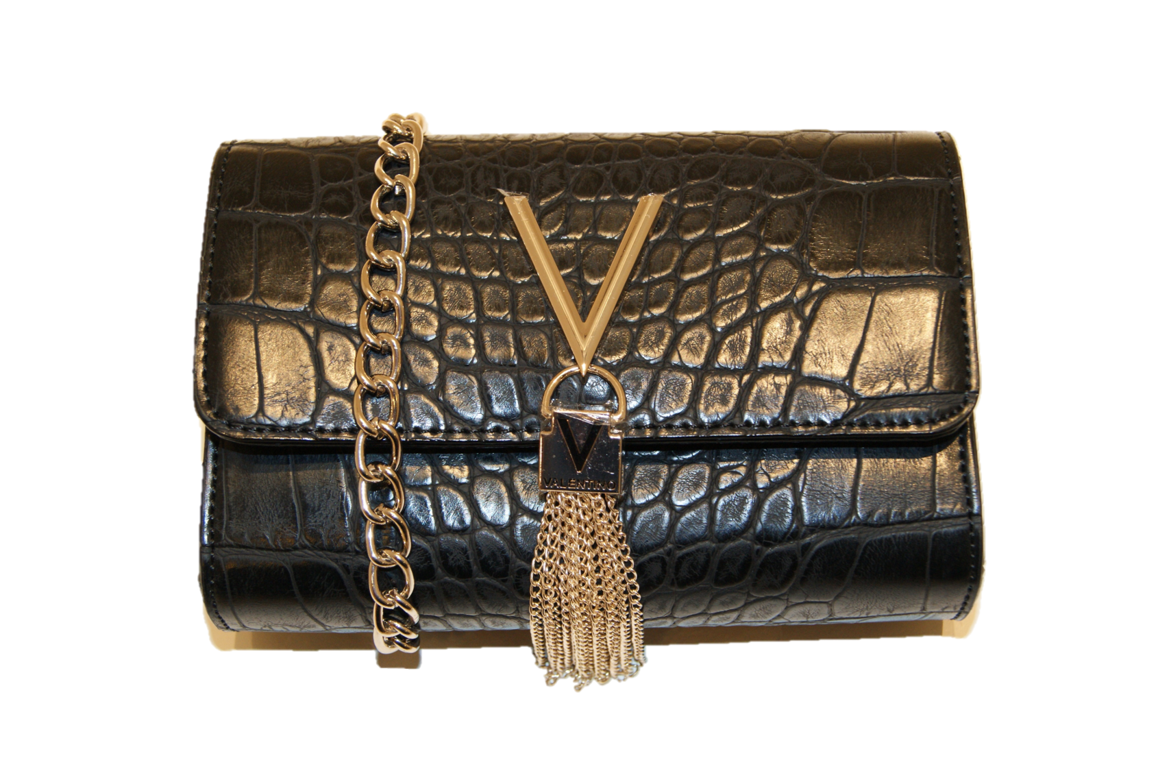 DIESE TASCHE VON VALENTINO BY MARIO VALENTINO MIT DEM NAMEN AUDREY . KLEINE UNIFARBENE DIVA UMHÄNGETASCHE MIT KROKOPRÄGUNG .