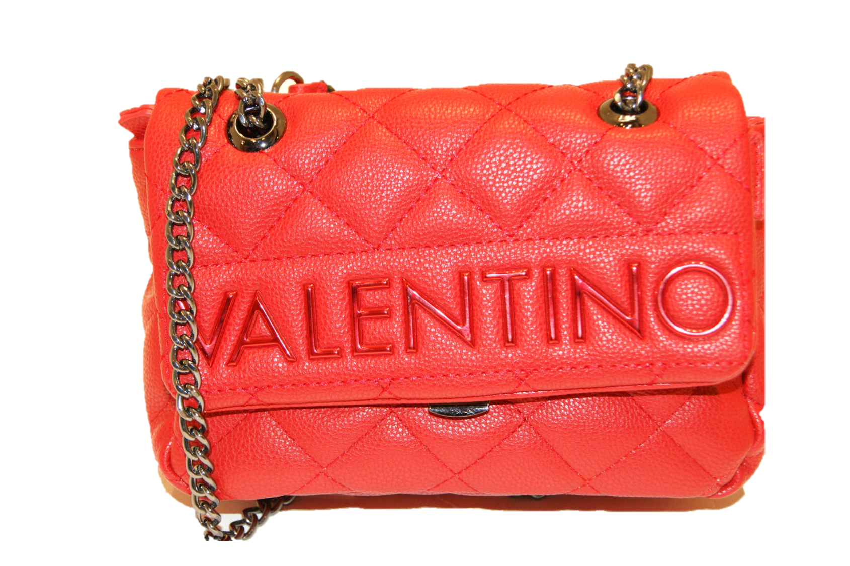 DIESE TASCHE VON VALENTINO BY MARIO VALENTINO MIT DEM NAMEN LICIA .KLEINE UMHÄNGETASCHE MIT 2 TRAGEHENKELN IM KETTENBESATZ UND ABGESTEPPTEN UNVERWECHSELBAREN DESIGN .