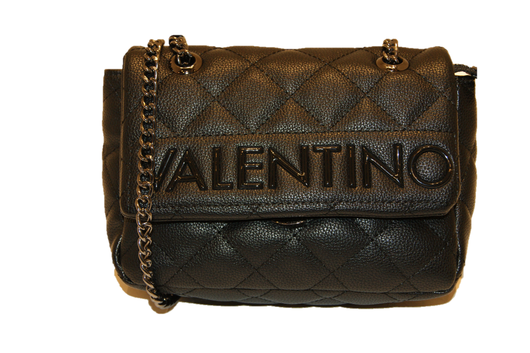 DIESE TASCHE VON VALENTINO BY MARIO VALENTINO MIT DEM NAMEN LICIA .KLEINE UMHÄNGETASCHE MIT 2 TRAGEHENKELN IM KETTENBESATZ UND ABGESTEPPTEN UNVERWECHSELBAREN DESIGN .