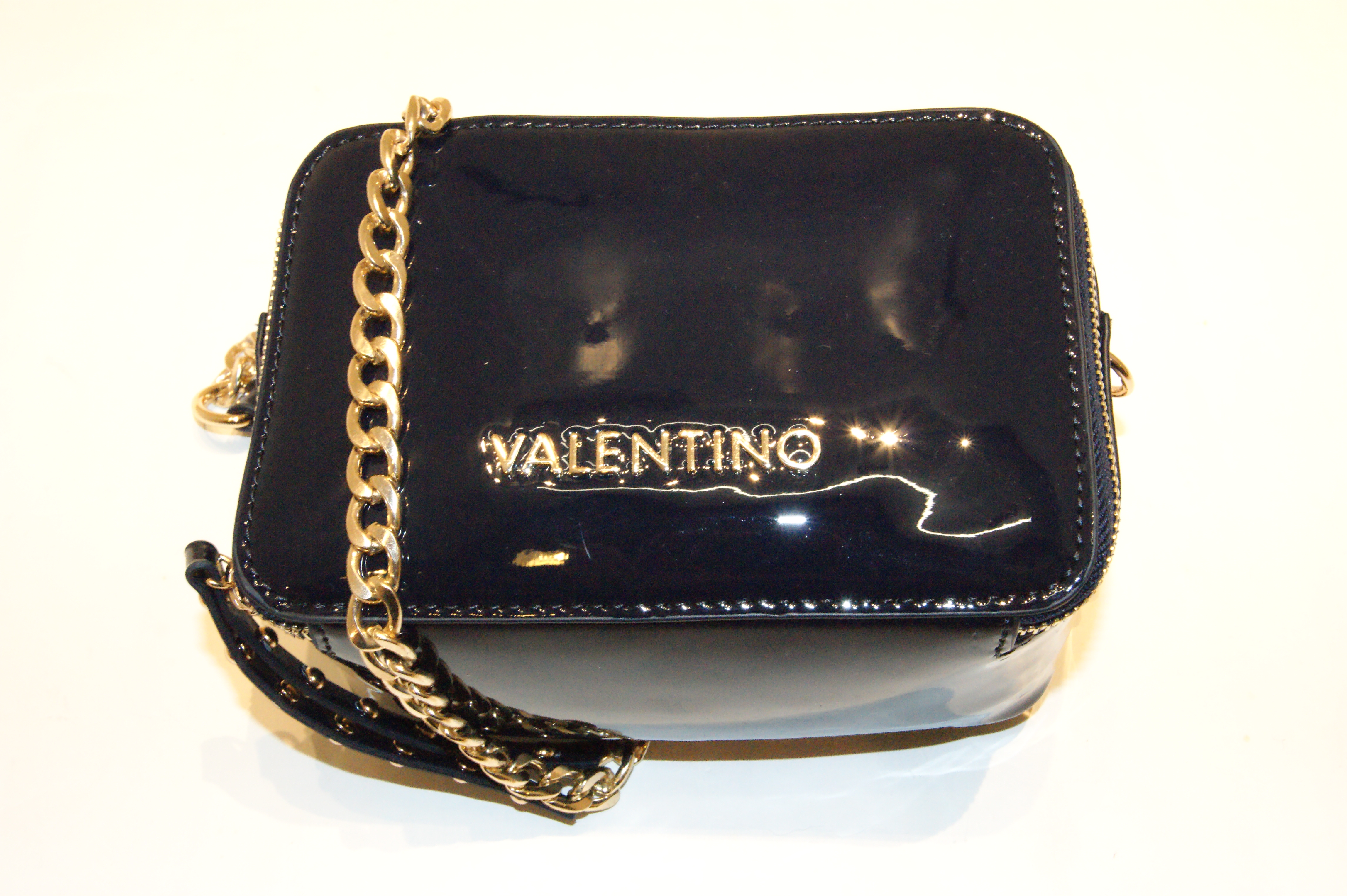 DIESE TASCHE VON VALENTINO BY MARIO VALENTINO MIT DEM NAMEN RIVAVE . KLEINE UNIFARBENE LACK DIVA UMHÄNGETASCHE.