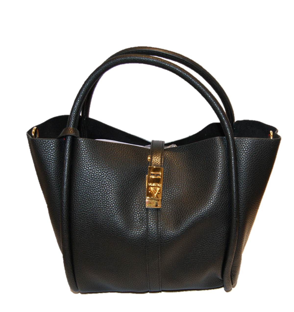DETAILS: OFFENE HENKELTASCHE MIT RIEMENVERSCHLUSS - 2 TRAGE HENKEL - HENKELFALL 11 CM - VALENTINO LOGO ALS ANHÄNGER .
