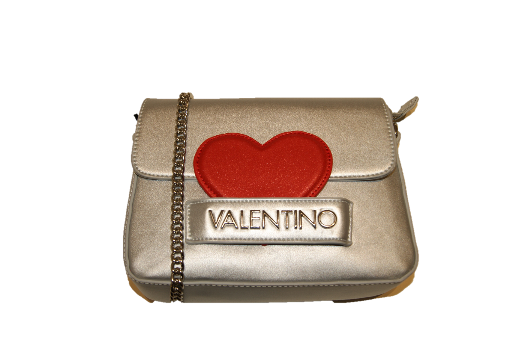 DETAILS : EIN HAUPTFACH - VERSCHLUSS EINSCHUB - SCHULTERGURT - VALENTINO LOGO AUF DER VORDERSEITE - HERZ AUF DER VORDERSEITE .