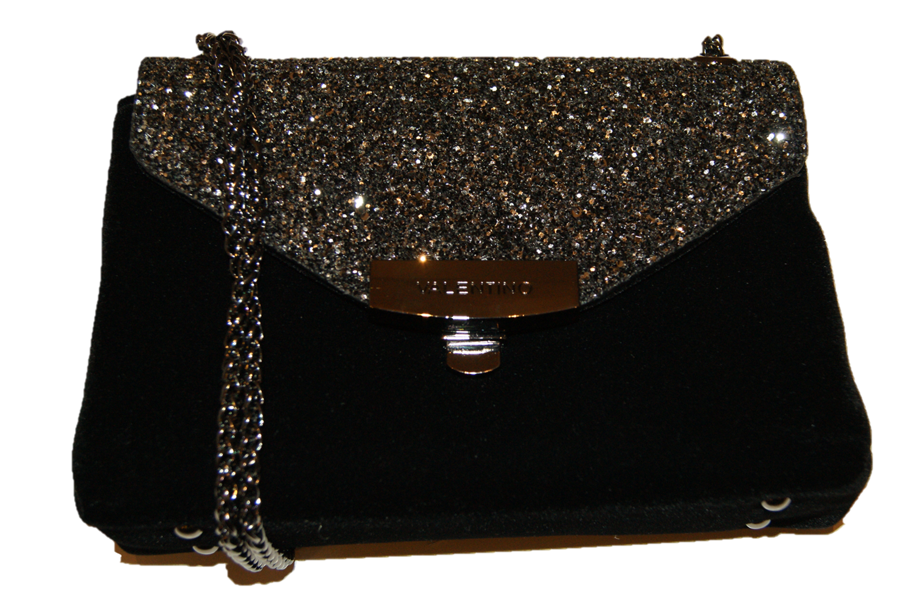 DIESE TASCHE VON VALENTINO BY MARIO VALENTINO MIT DEM NAMEN VELVET . KLEINE UNIFARBENE DIVA UMHÄNGETASCHE MIT GOLDFARBENEM BESATZ.