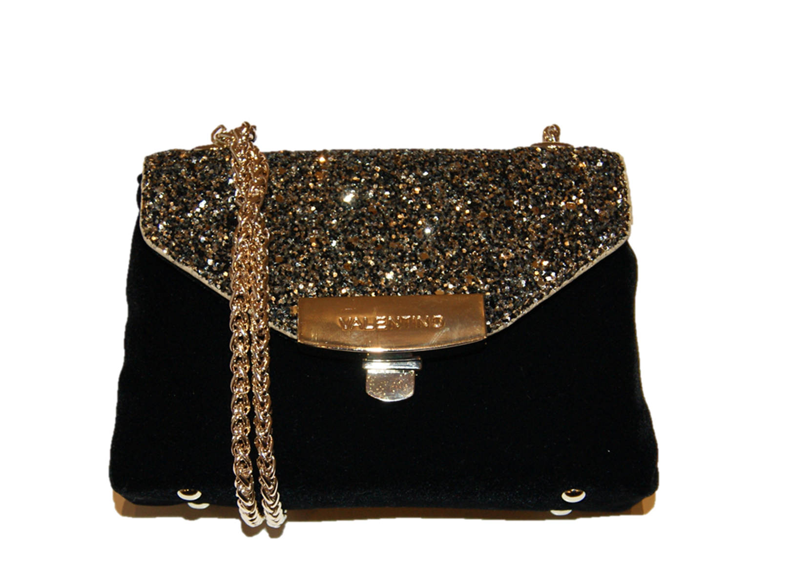 DIESE TASCHE VON VALENTINO BY MARIO VALENTINO MIT DEM NAMEN VELVET . KLEINE UNIFARBENE DIVA UMHÄNGETASCHE MIT GOLDFARBENEM BESATZ.