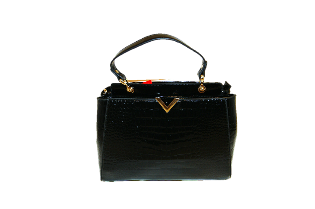 DIESE HANDTASCHE VON VALENTINO HANDBAGS MIT DEM NAMEN POINT IN SCHWARZER LACKLEDER KROKO OPTIK PERFEKTE TASCHE FÜR JEDEN TAG