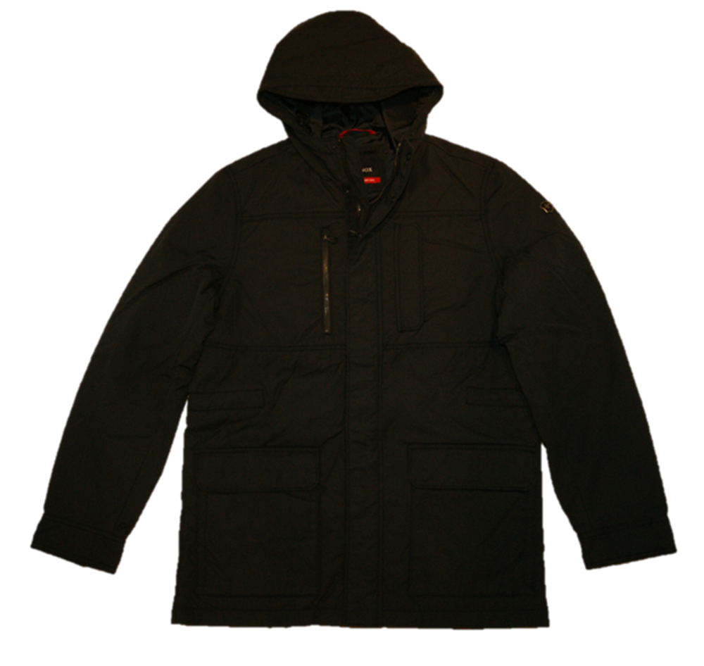 DETAILS: RECYCELTEN POLYESTER GARN - WASSERABWEISEND- VERSCHLUSS REISSVERSCHLUSS - JACKE MITTELLANG - KAPUZE - 2 AUFGESETZTE TASCHEN .