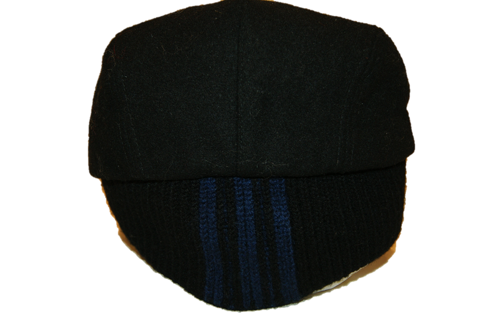 DETAILS : SCHIEBERMÜTZE -MIT DRUCKKNOPF VERSCHLUSS AM SCHIRM - KLEINES TONALES Y3 ZEICHEN AN DER LINKEN SEITE - WOLLSTRICK AN DER RÜCKSEITE MIT 3 ABGESETZTEN BLAUEN STREIFEN .